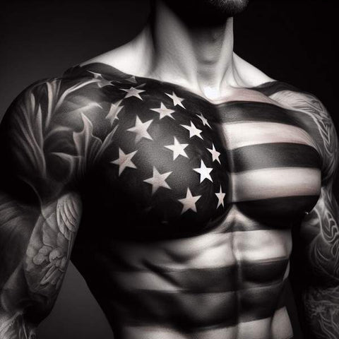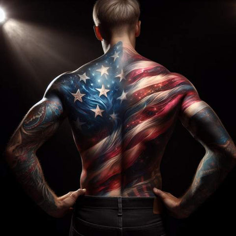 The back offers a large canvas for intricate and detailed tattoos. An American flag back tattoo can be a standalone design or part of a larger piece, such as a mural or scene. This placement allows for maximum creativity and artistry.