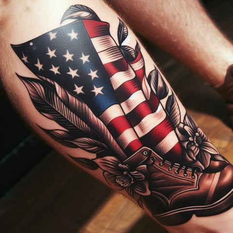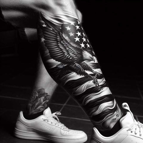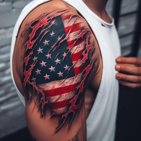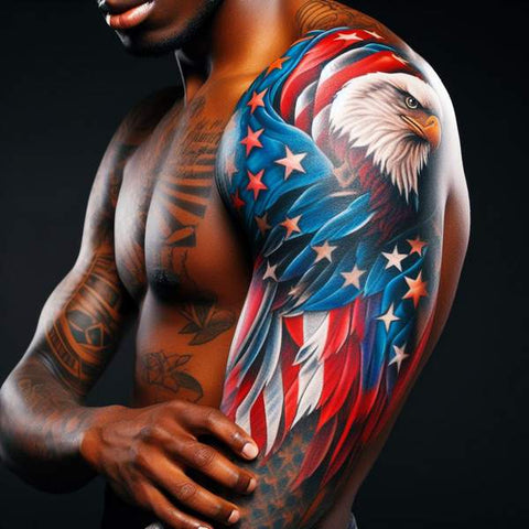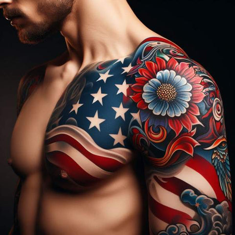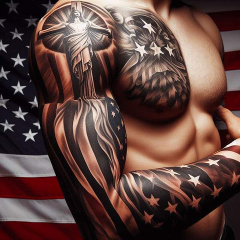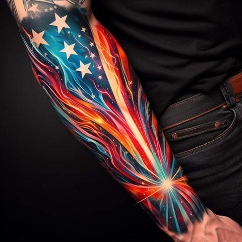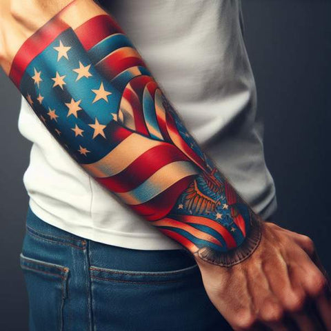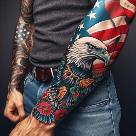 For those who want to make a bold statement, an American flag sleeve tattoo is a stunning option. This design covers the entire arm and can incorporate additional elements like eagles, stars, or military insignia. A sleeve tattoo requires commitment and skill, but the result is a breathtaking masterpiece that showcases your patriotism in style.