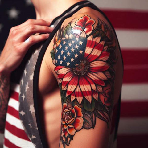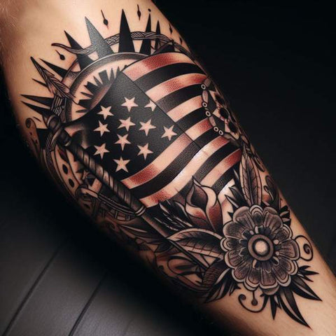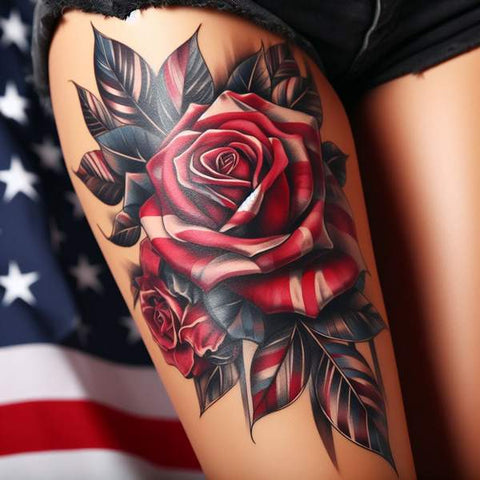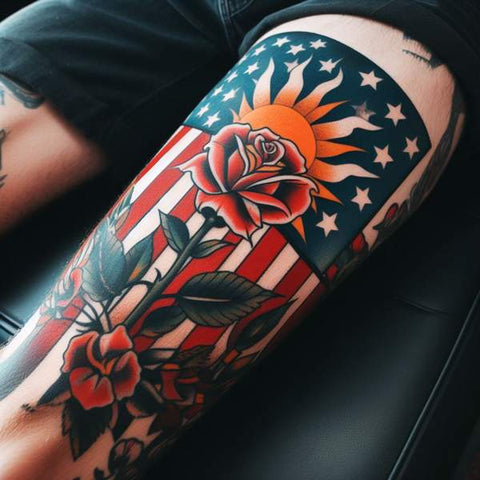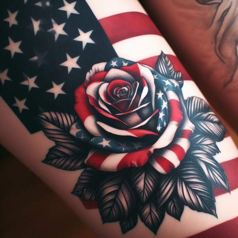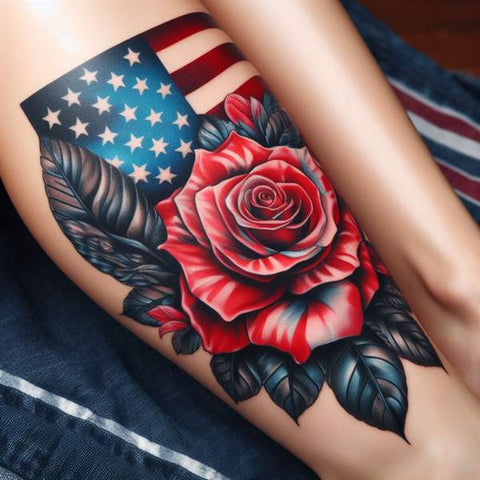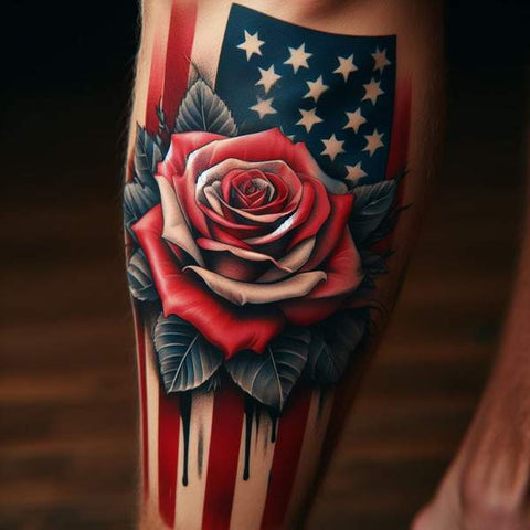Combining the American flag with a rose creates a beautiful and symbolic design. The rose often represents love, beauty, or sacrifice, adding depth and meaning to the tattoo.