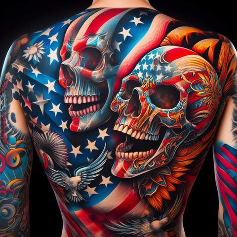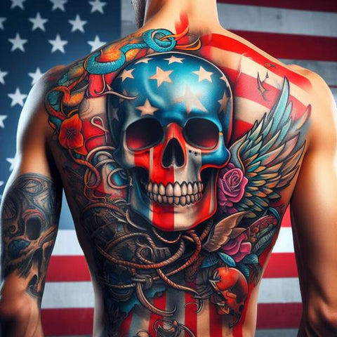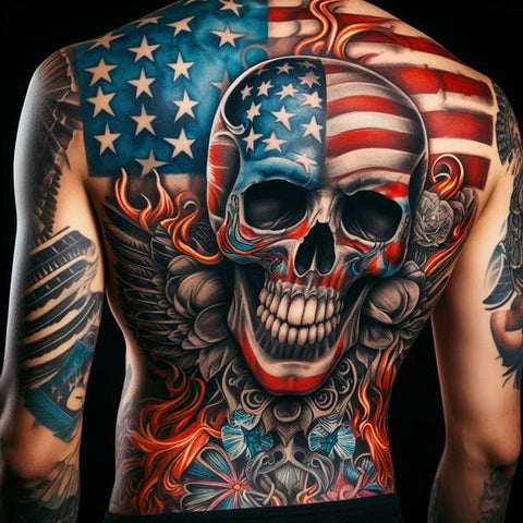 For a more unconventional take, an American flag skull tattoo combines patriotism with edginess. This design often represents sacrifice, mortality, or the darker side of history, making it a thought-provoking choice.