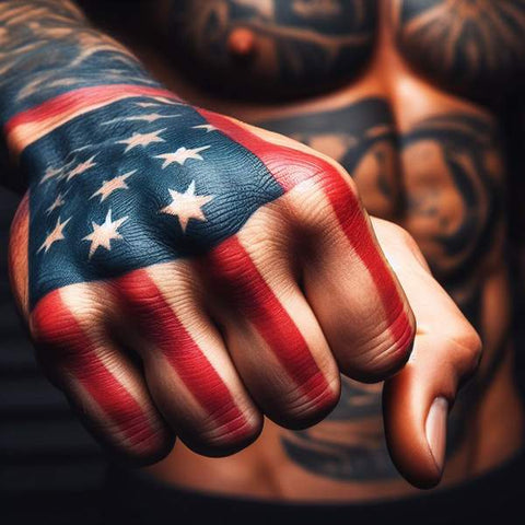 A hand tattoo is a bold and visible choice, and an American flag design here is sure to turn heads. This placement is perfect for those who want to make a strong statement with their ink.