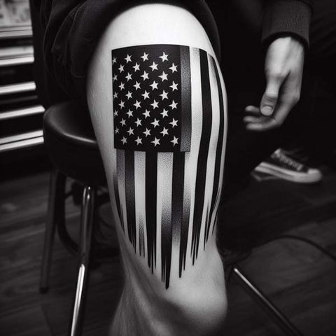 For a more minimalist and timeless look, a black and white American flag tattoo is an excellent option. This monochromatic design emphasizes the flag’s iconic stripes and stars without the distraction of color. It’s perfect for those who prefer a subtle yet meaningful tattoo.