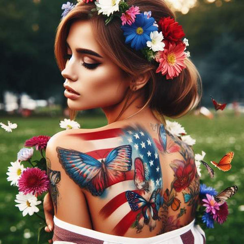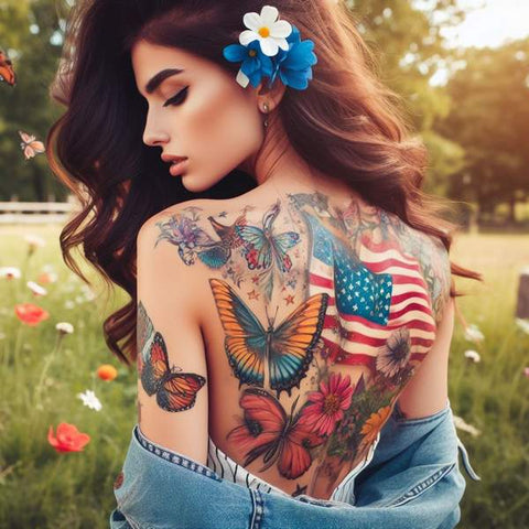 A butterfly paired with the American flag is a unique and creative design. This tattoo often symbolizes transformation, freedom, and hope, making it a meaningful choice for many.