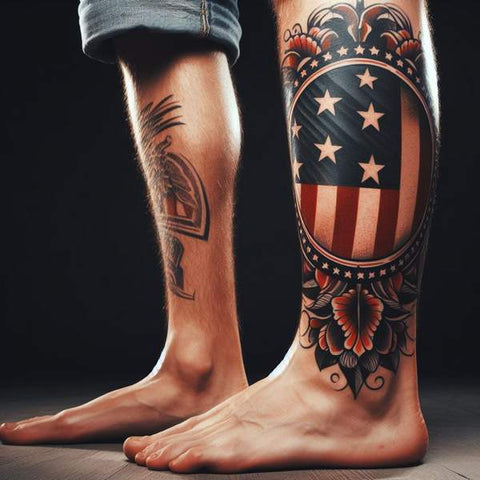 The leg is another versatile placement for tattoos, and an American flag design here can be as bold or subtle as you like. Whether you choose the thigh, calf, or ankle, a leg tattoo offers plenty of space for creativity.