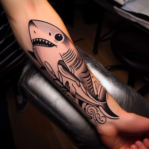 A cartoon shark tattoo is a fun and creative design that combines the strength of a shark with a playful, animated style. It represents the wearer’s ability to embrace their inner child while still embodying power and resilience. This design is ideal for those who want a unique and lighthearted tattoo.