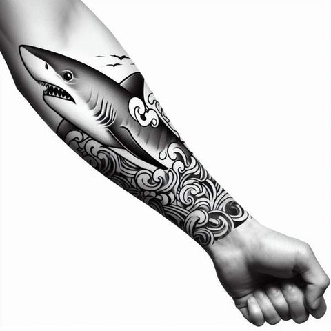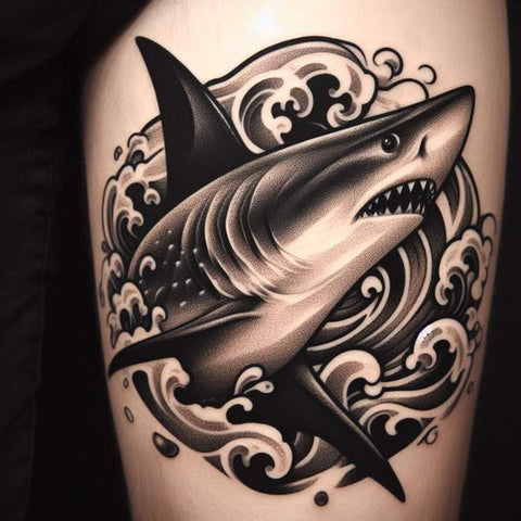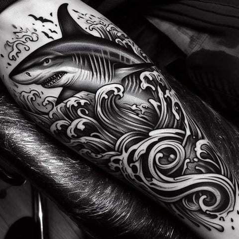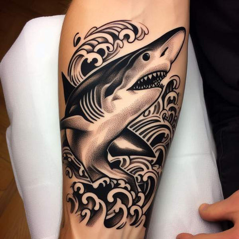 Japanese shark tattoos often feature intricate details and traditional Japanese art styles. They symbolize strength, protection, and the wearer’s connection to the ocean. This design is ideal for those who appreciate the rich cultural heritage of Japanese tattoo art.