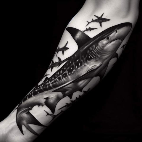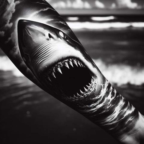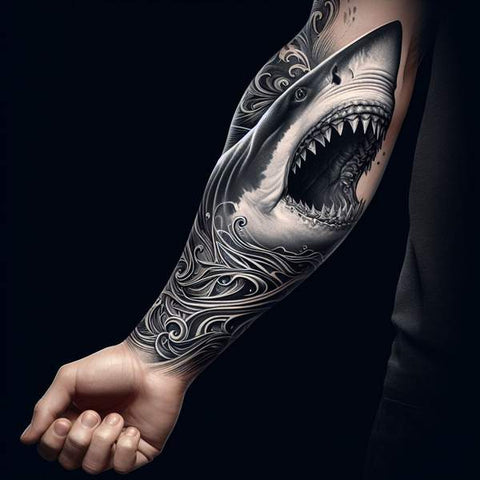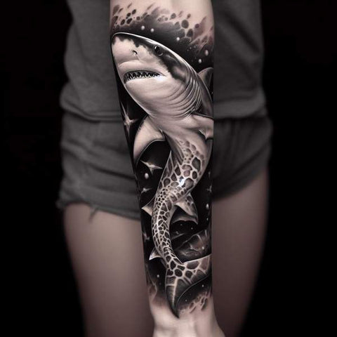 A shark tattoo on the arm is a bold and visible choice. It symbolizes the wearer’s strength and readiness to take on challenges. The arm placement allows for detailed and creative designs, making it a popular choice for shark tattoos.