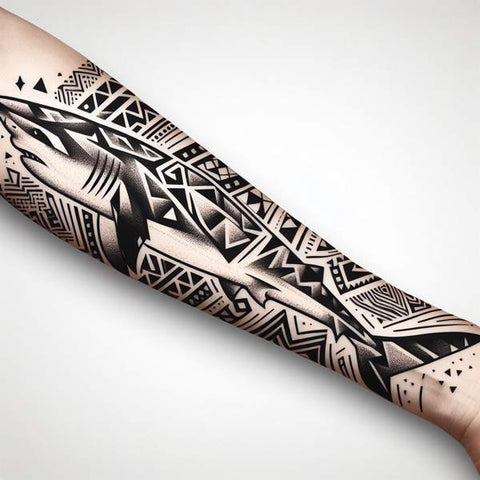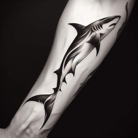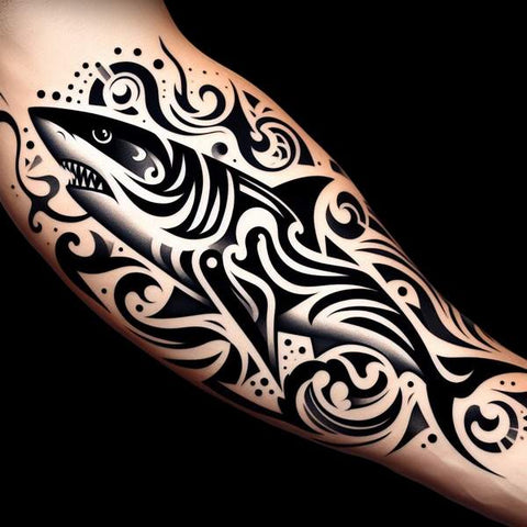 Tribal shark tattoos draw inspiration from ancient tribal art, featuring bold, geometric patterns. These designs symbolize the wearer’s connection to their roots, as well as their strength and resilience. Tribal shark tattoos are often chosen for their cultural significance and striking appearance.