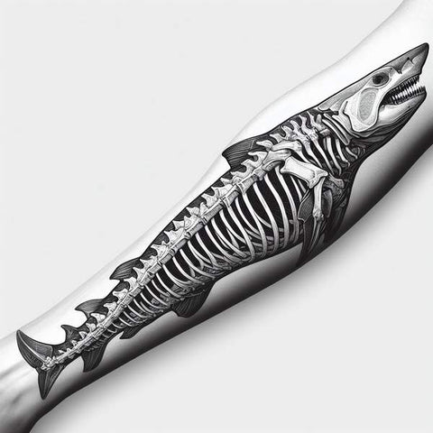 A shark skeleton tattoo is a unique and edgy design that represents the wearer’s fascination with the darker aspects of life. It symbolizes the cycle of life and death, as well as the wearer’s ability to confront their fears. This design is ideal for those who embrace the mysterious and unconventional.